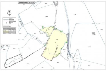 Teilungsplan und Gebäudekatastermeldung eines Weidestalles mit Heulager