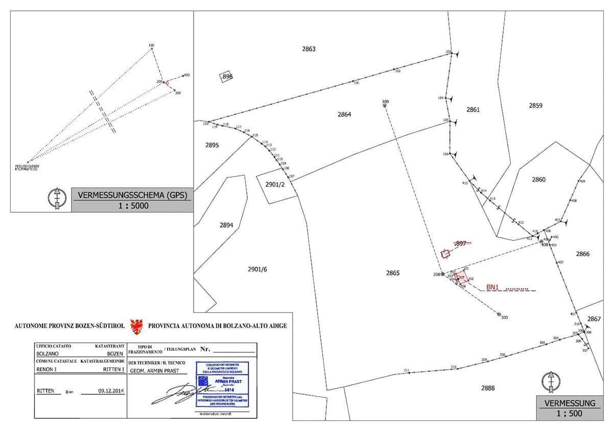 Teilungsplan und Gebäudekatastermeldung eines Weidestalles mit Heulager