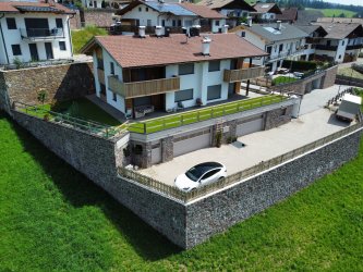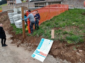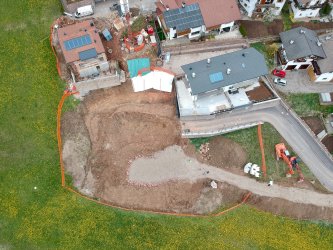 Bau eines geförderten Wohnhauses mit zwei Wohneinheiten, sowie von zwei Garagen als Zubehör zum den Wohneinheiten
